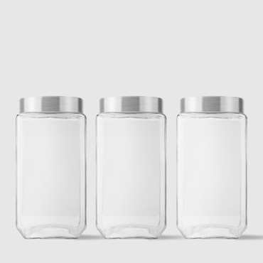 preta e branca e nos tamanhos: 800ml, 1.2L e 2.2L - Potes de Vidro Quadrados Collection com Tampa de Inox Escovado: Um
