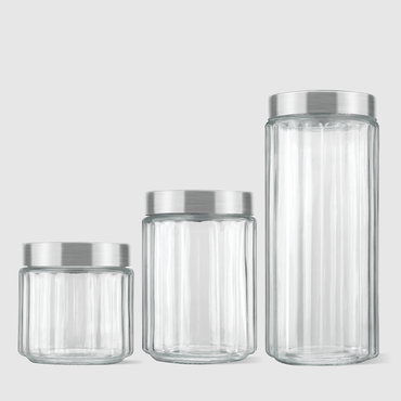 Potes de Vidro Redondo Collection Inox: Tampa em inox escovado,